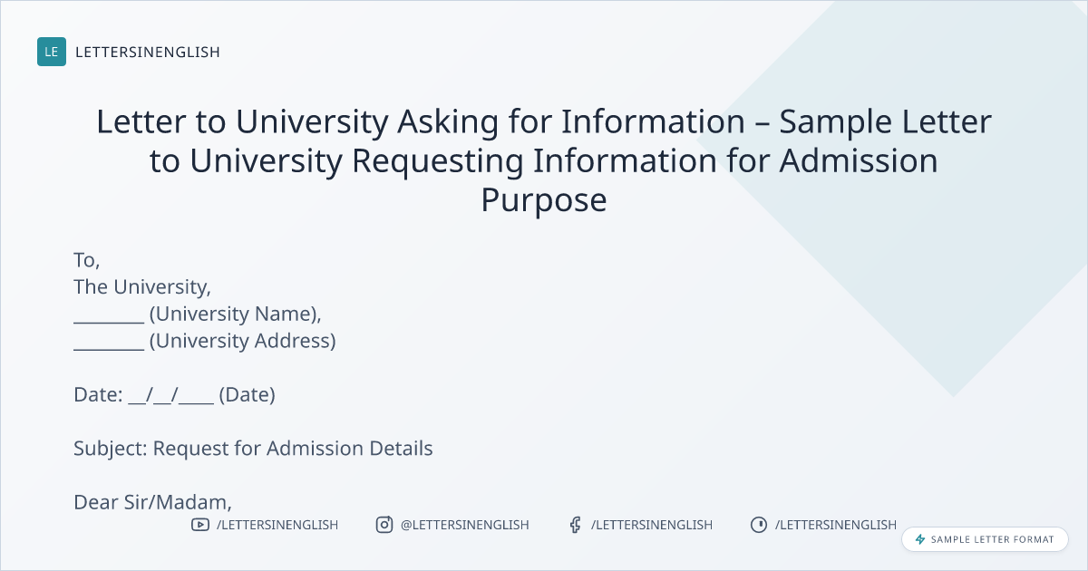 Sample Letter to University for Information for Admission Purpose
