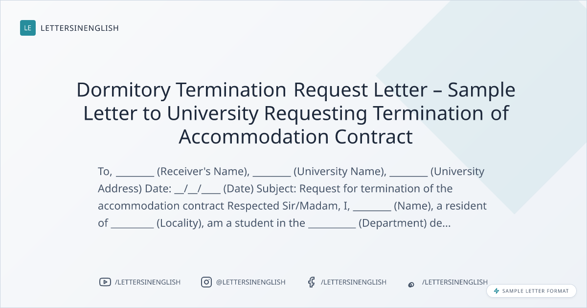 Dormitory Termination Request Letter – Sample Letter to University Requesting Termination of Accommodation Contract