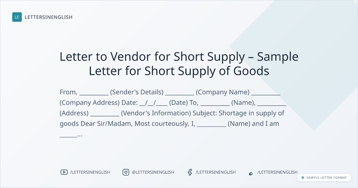 Letter to Vendor for Short Supply – Sample Letter for Short Supply of Goods