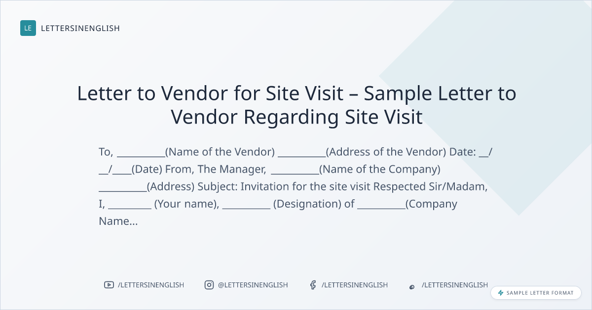 Letter to Vendor for Site Visit – Sample Letter to Vendor Regarding Site Visit