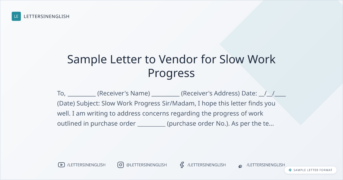 This letter is to inform you that as per the purchase order __________ (purchase order No.) terms the work completion date/ delivery date/ deadline for executing the order was _____________ (deadline date).