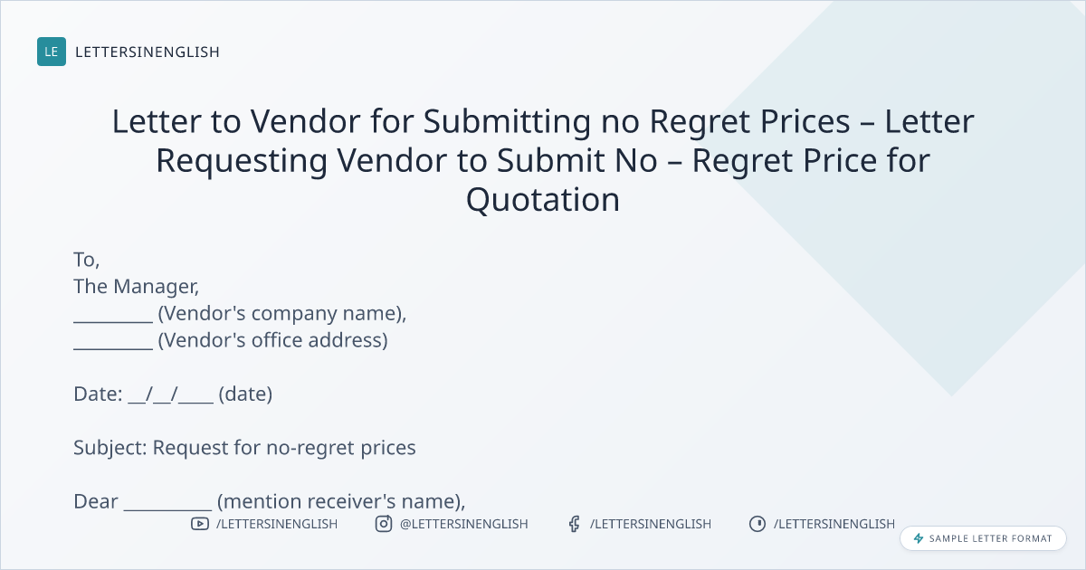 Letter to Vendor for Submitting no Regret Prices – Letter Requesting Vendor to Submit No – Regret Price for Quotation