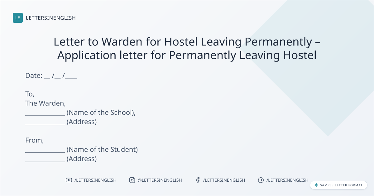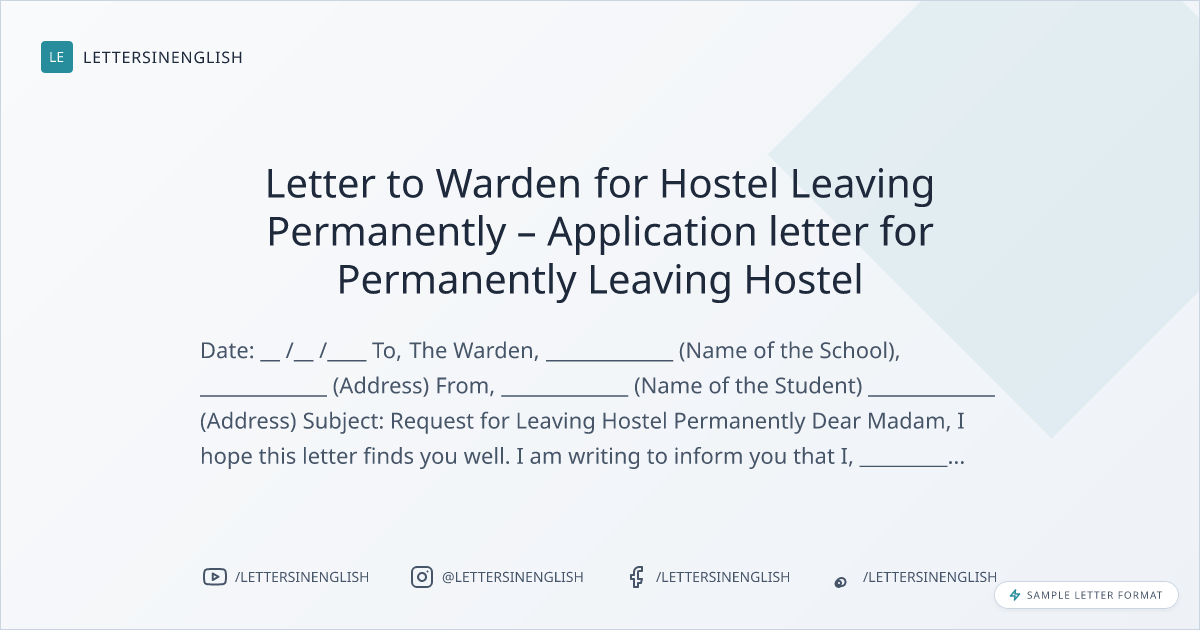 Letter to Warden for Hostel Leaving Permanently – Application letter for Permanently Leaving Hostel