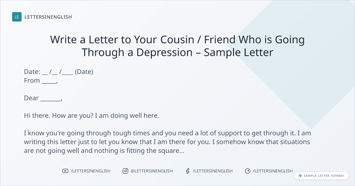 Write a Letter to Your Cousin / Friend Who is Going Through a Depression – Sample Letter