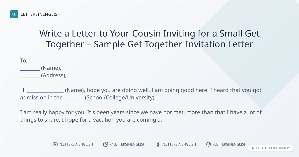 Write a Letter to Your Cousin Inviting for a Small Get Together – Sample Get Together Invitation Letter