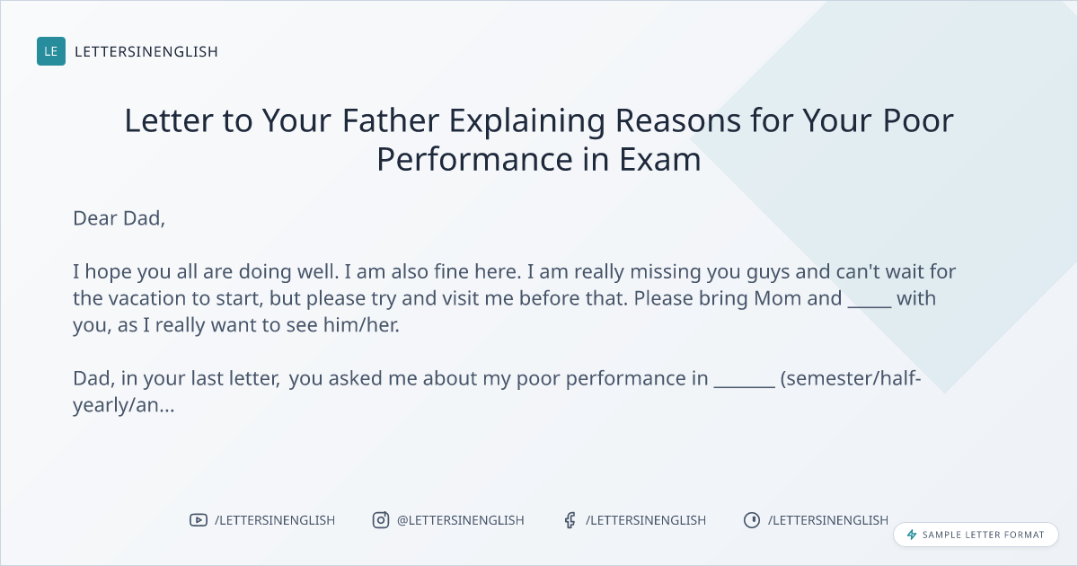Sample Letter to Your Father Explaining Reasons for Your Poor Performance in Exam