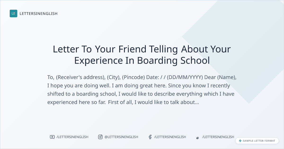 Letter To Your Friend Telling About Your Experience In Boarding School