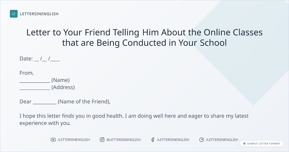 - Write a letter to your friend telling him about the online classes that are being conducted in your school