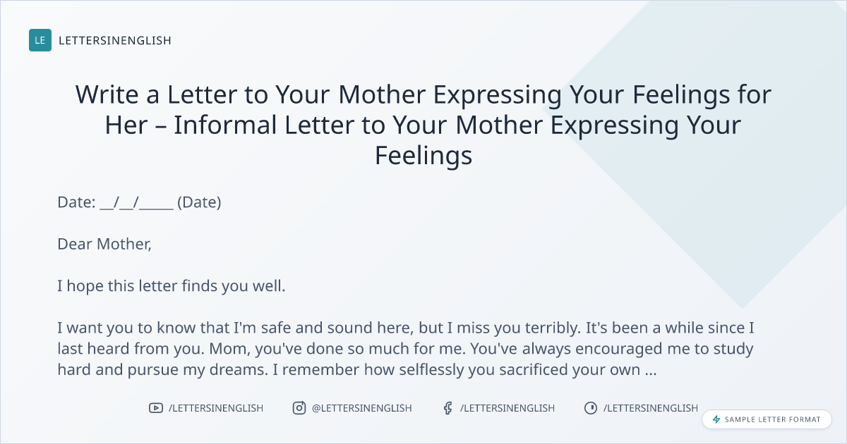 Sample Letter to Your Mother Expressing Your Feelings for Her