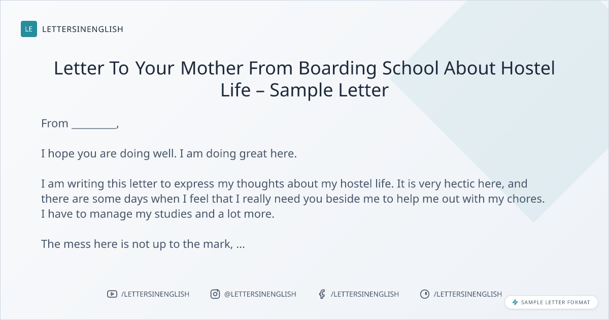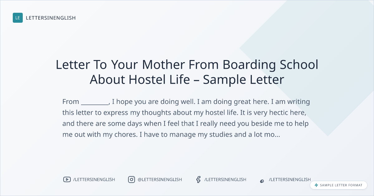 Letter To Your Mother From Boarding School About Hostel Life – Sample Letter