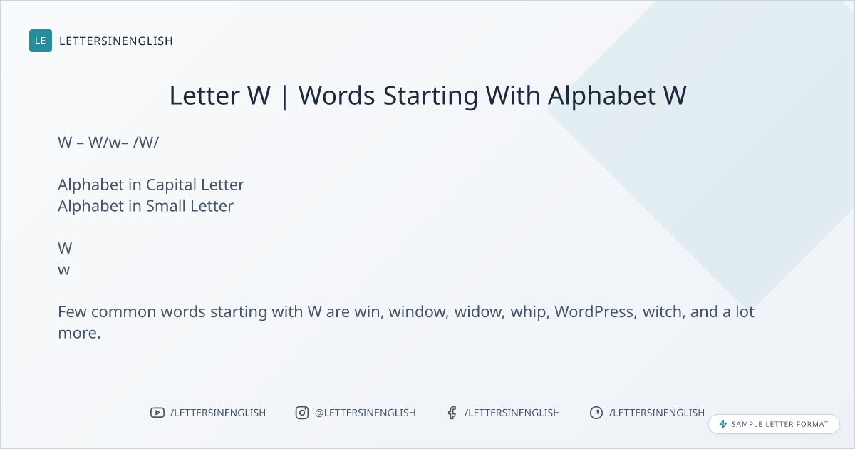 Letter W | Words Starting With Alphabet W