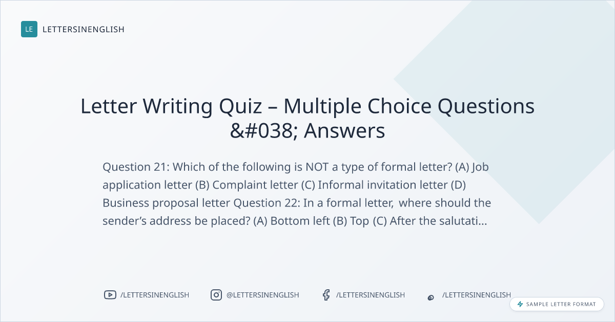 Letter Writing Quiz – Multiple Choice Questions & Answers