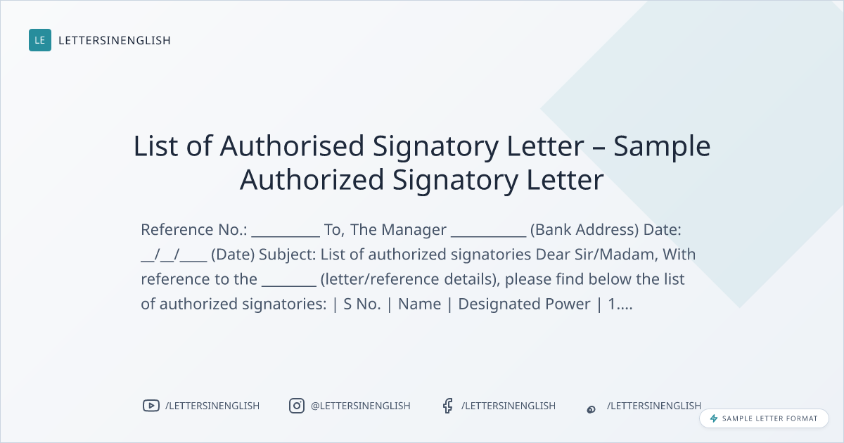 List of Authorised Signatory Letter – Sample Authorized Signatory Letter