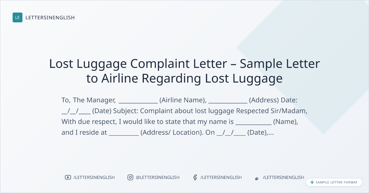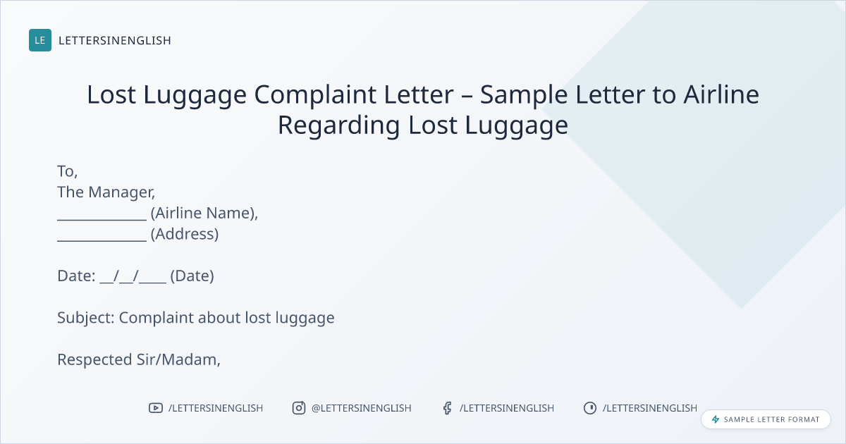 Lost Luggage Complaint Letter – Sample Letter to Airline Regarding Lost Luggage