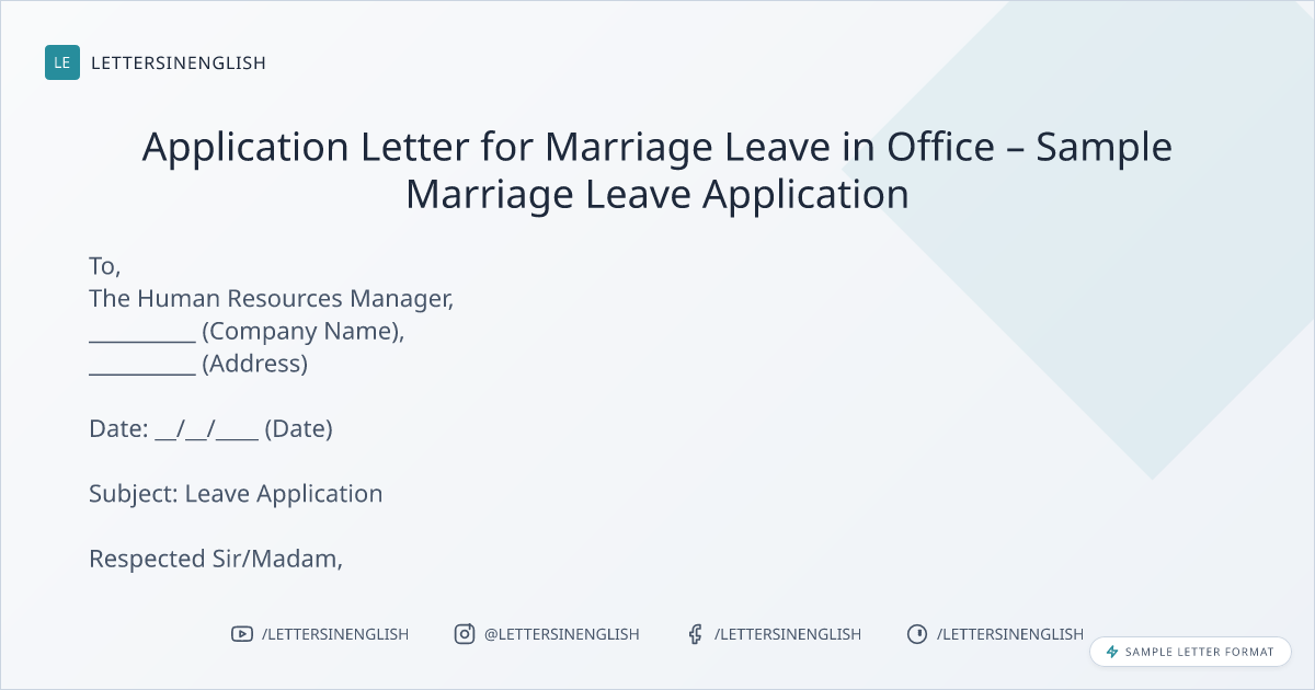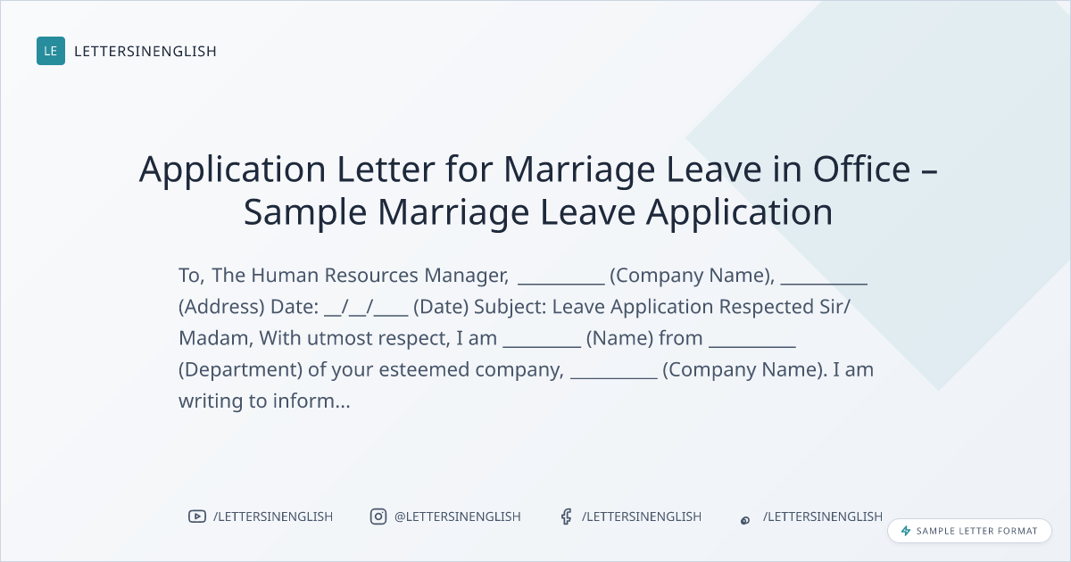 Application Letter for Marriage Leave in Office – Sample Marriage Leave Application