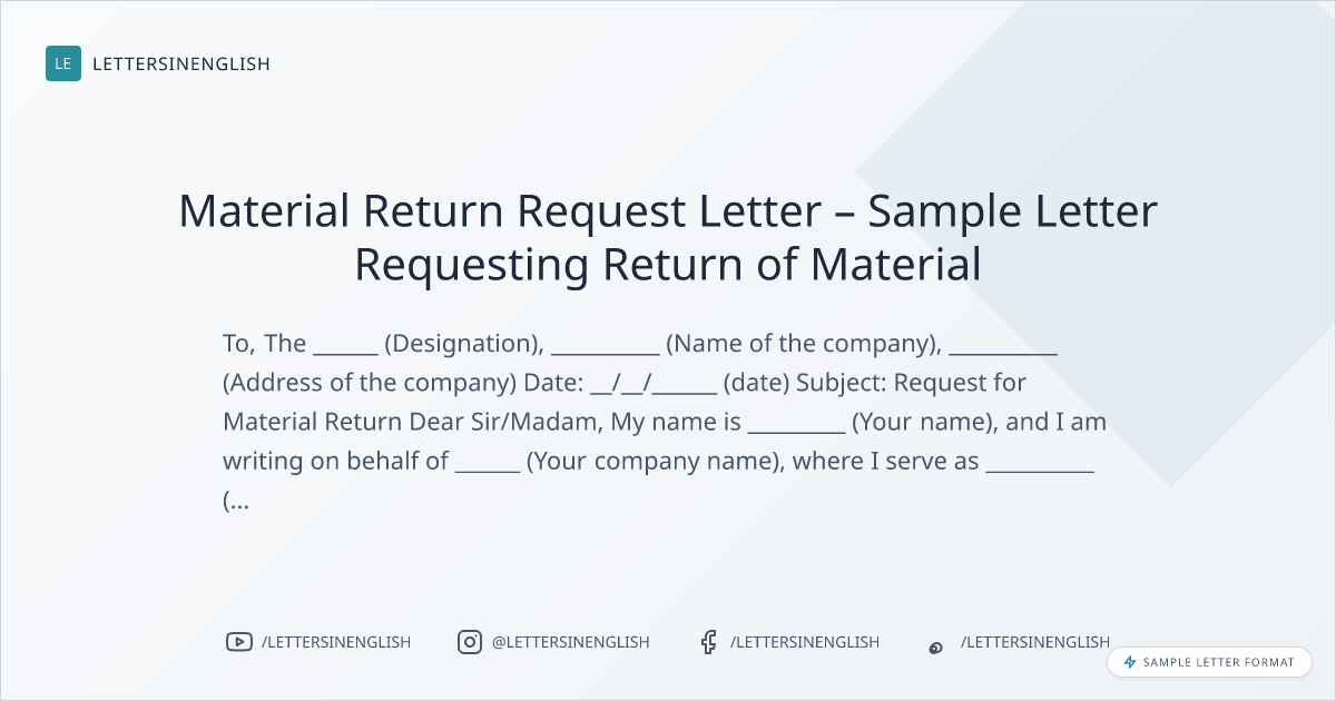Material Return Request Letter – Sample Letter Requesting Return of Material