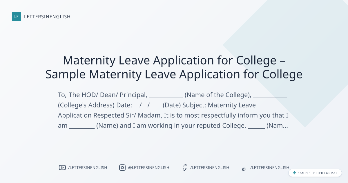 Sample Maternity Leave Application for College