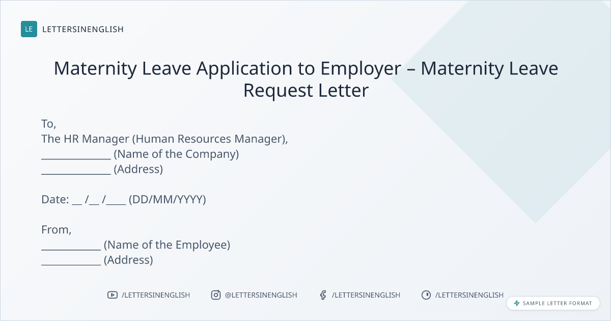Maternity Leave Application to Employer – Maternity Leave Request Letter