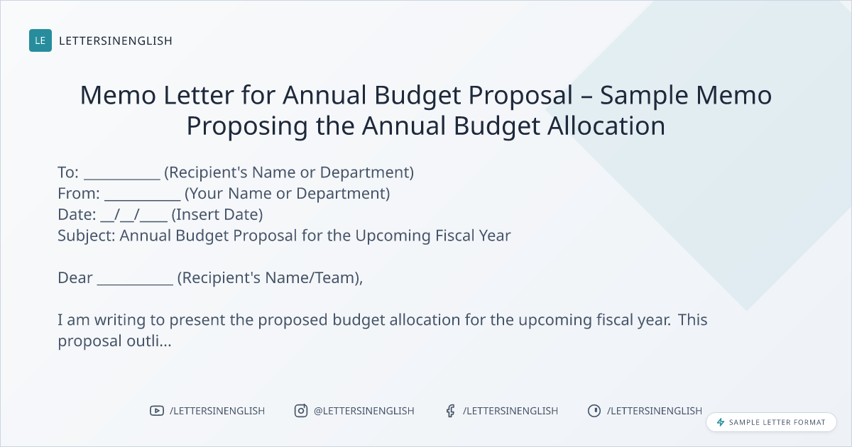 Memo Letter for Annual Budget Proposal – Sample Memo Proposing the Annual Budget Allocation