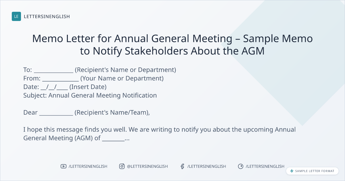 Memo Letter for Annual General Meeting – Sample Memo to Notify Stakeholders About the AGM