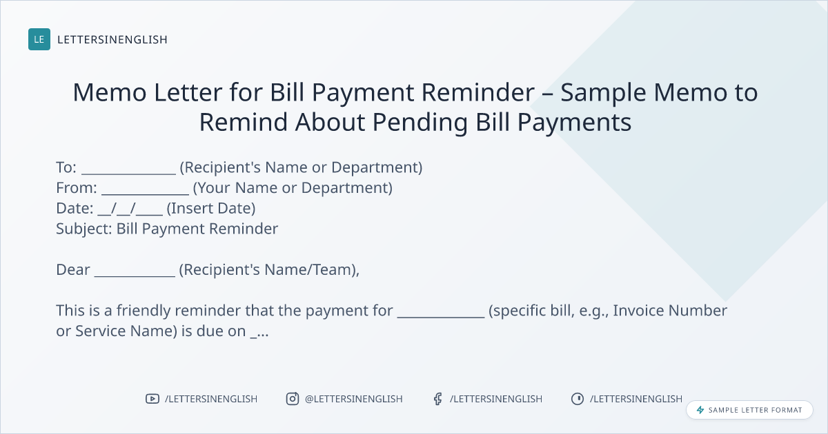 Memo Letter for Bill Payment Reminder – Sample Memo to Remind About Pending Bill Payments