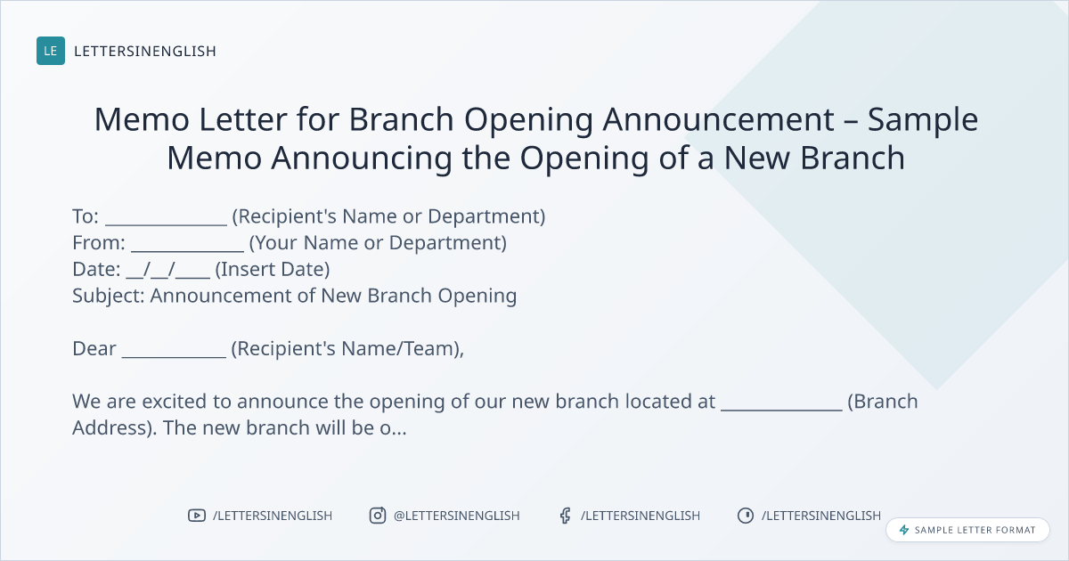 Memo Letter for Branch Opening Announcement – Sample Memo Announcing the Opening of a New Branch
