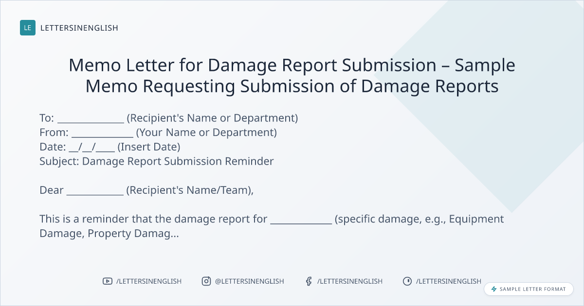 Memo Letter for Damage Report Submission – Sample Memo Requesting Submission of Damage Reports