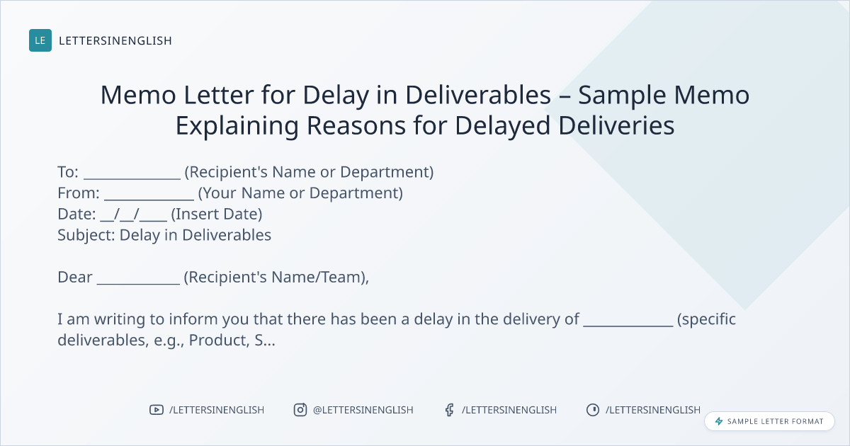 Memo Letter for Delay in Deliverables – Sample Memo Explaining Reasons for Delayed Deliveries