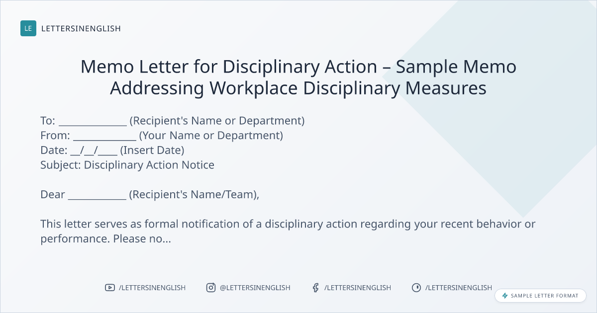 Memo Letter for Disciplinary Action – Sample Memo Addressing Workplace Disciplinary Measures