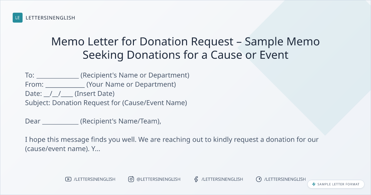 Memo Letter for Donation Request – Sample Memo Seeking Donations for a Cause or Event