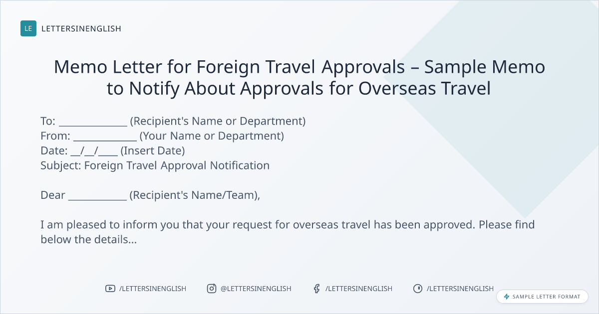 Memo Letter for Foreign Travel Approvals – Sample Memo to Notify About Approvals for Overseas Travel