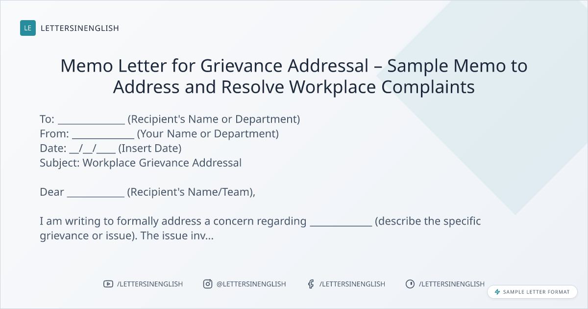 Memo Letter for Grievance Addressal – Sample Memo to Address and Resolve Workplace Complaints