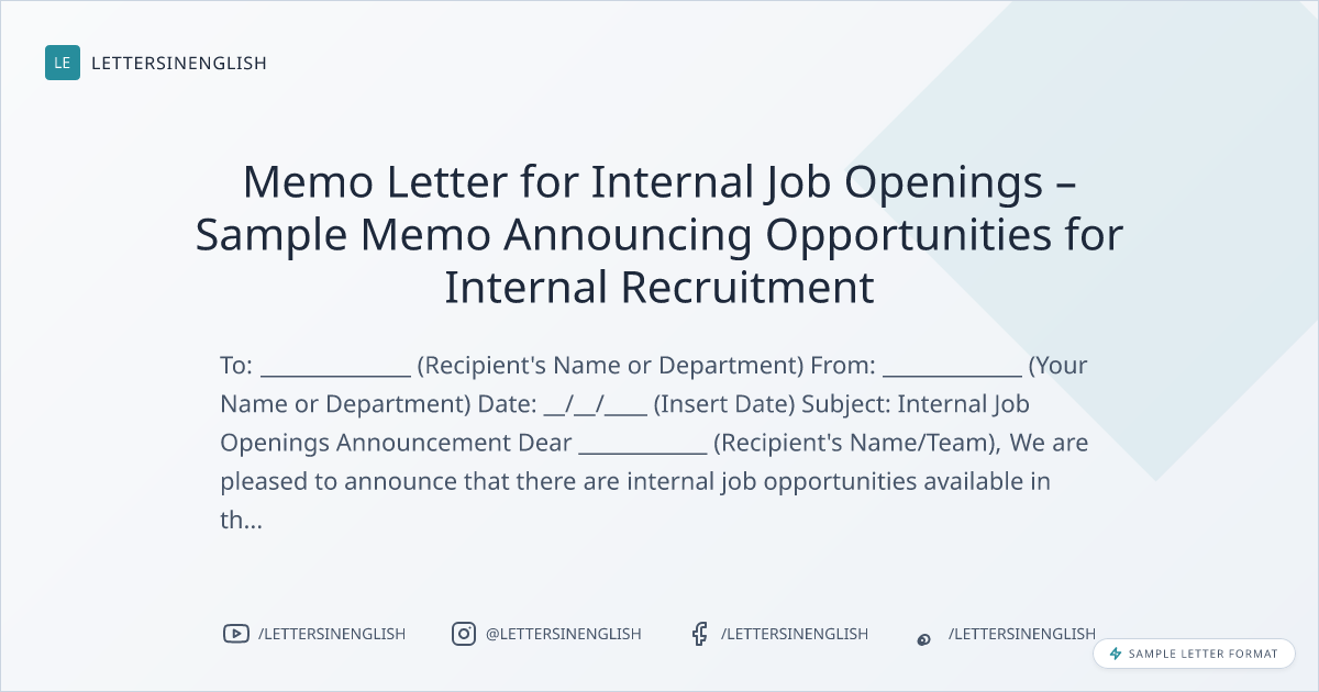 Memo Letter for Internal Job Openings – Sample Memo Announcing Opportunities for Internal Recruitment
