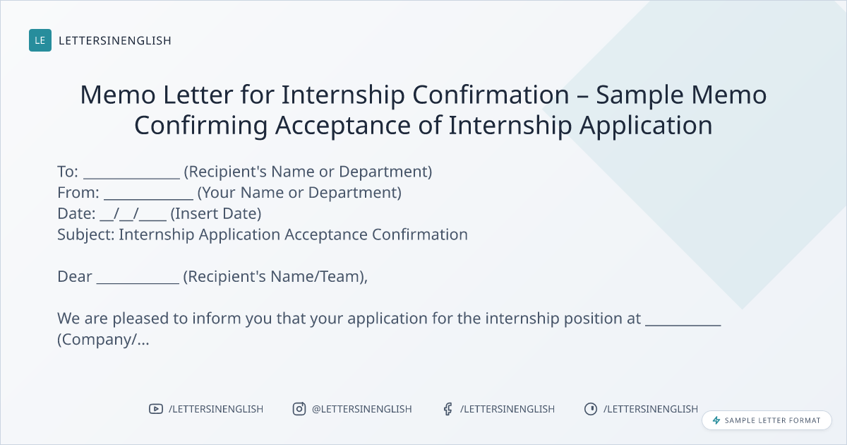 Memo Letter for Internship Confirmation – Sample Memo Confirming Acceptance of Internship Application