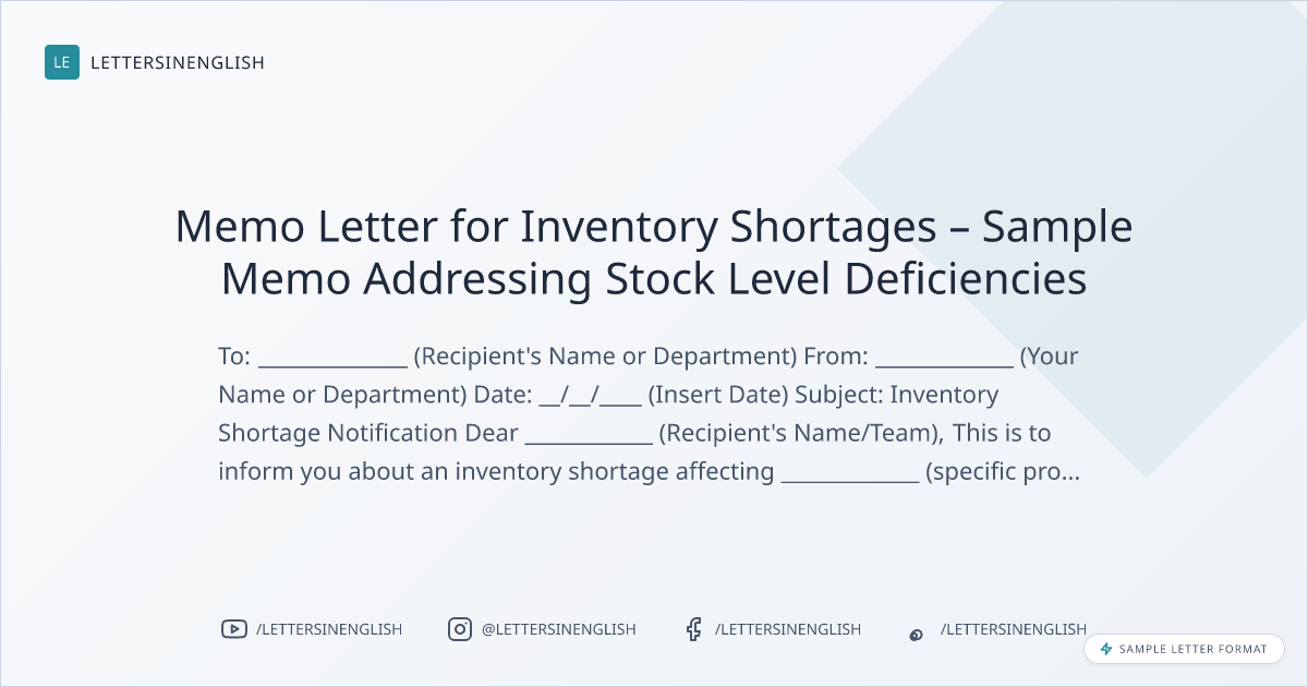 Memo Letter for Inventory Shortages – Sample Memo Addressing Stock Level Deficiencies