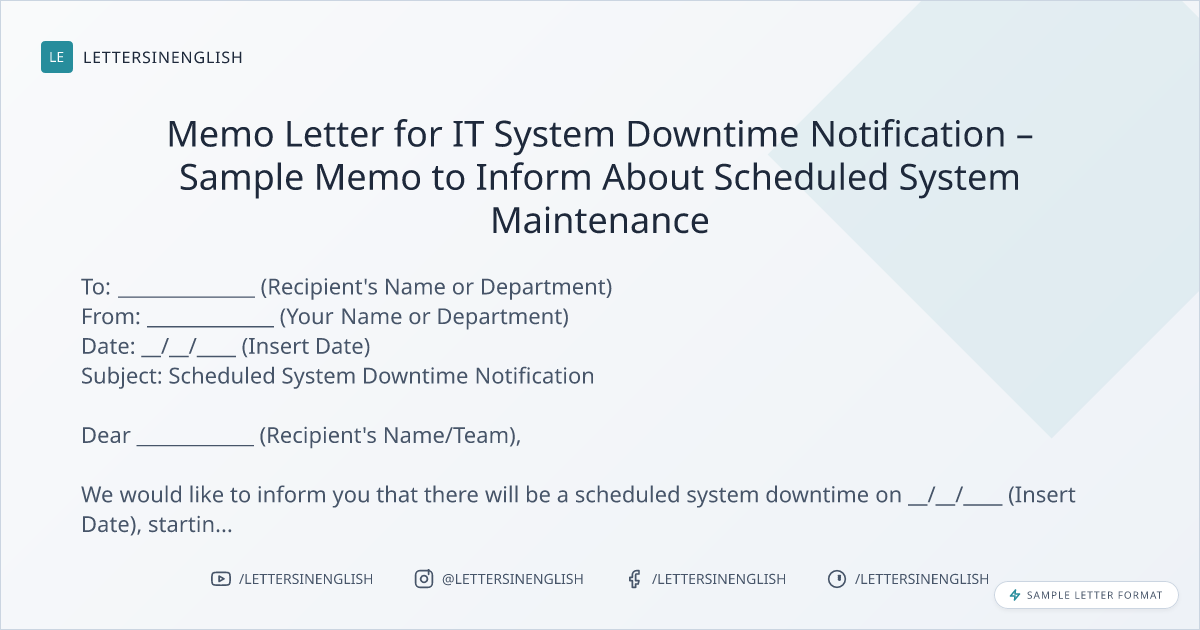 Memo Letter for IT System Downtime Notification – Sample Memo to Inform About Scheduled System Maintenance