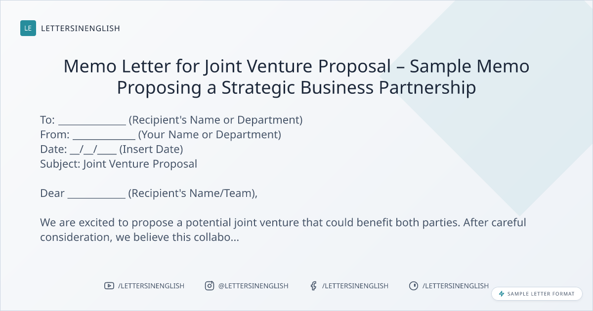Memo Letter for Joint Venture Proposal – Sample Memo Proposing a Strategic Business Partnership