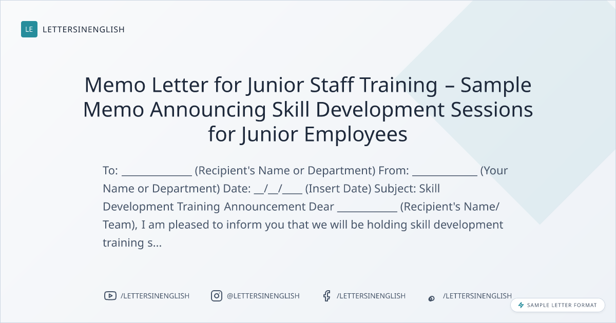 Memo Letter for Junior Staff Training - Sample Memo Announcing Skill Development Sessions for Junior Employees