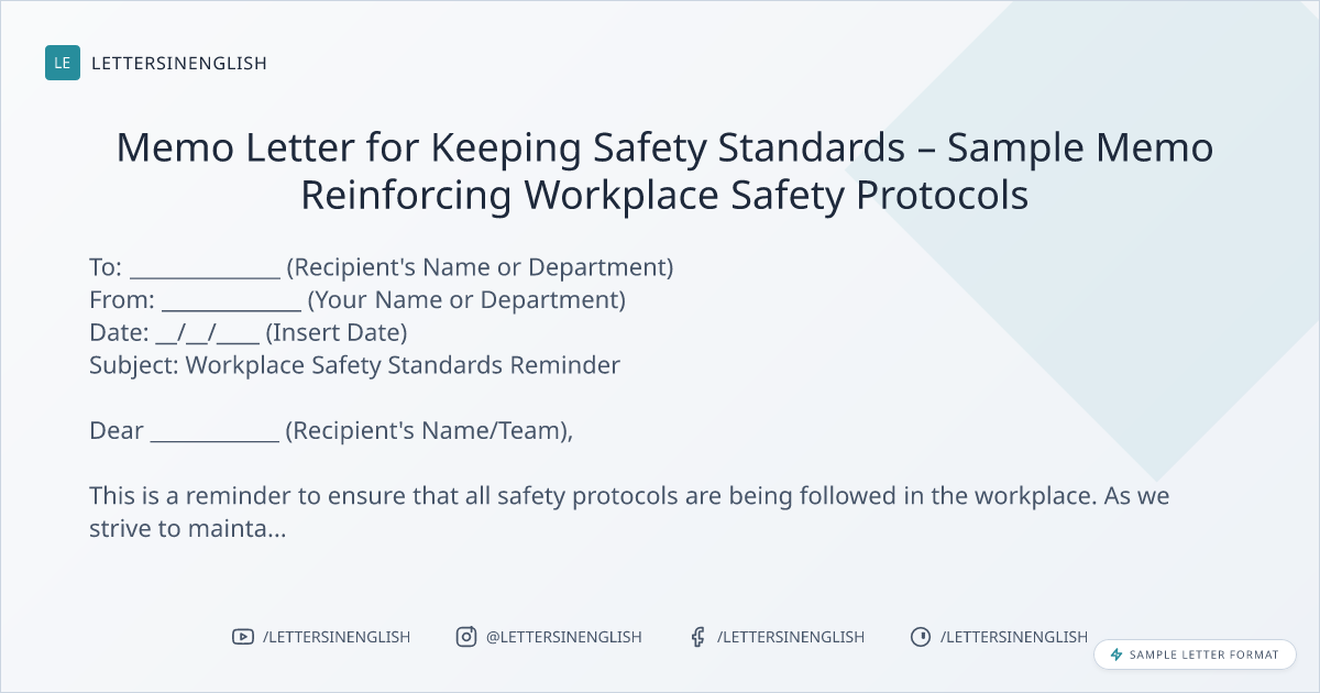 Memo Letter for Keeping Safety Standards – Sample Memo Reinforcing Workplace Safety Protocols
