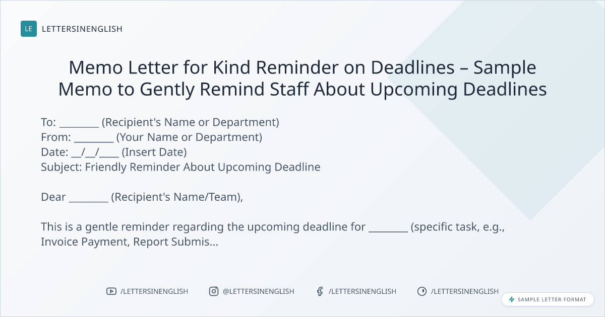 Memo Letter for Kind Reminder on Deadlines – Sample Memo to Gently Remind Staff About Upcoming Deadlines
