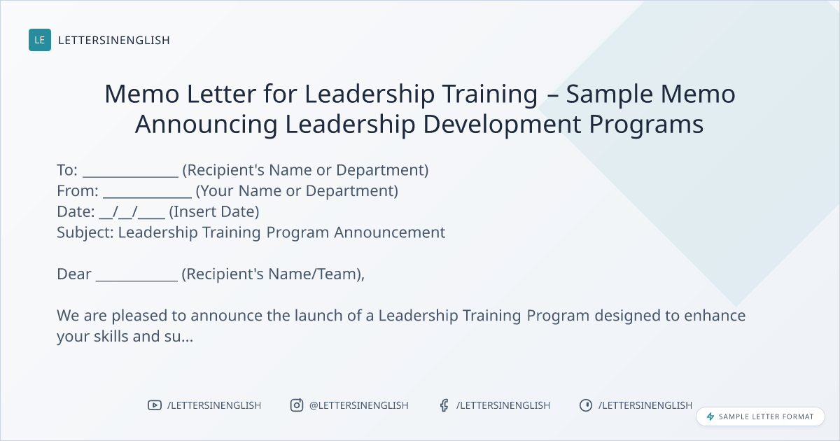 Memo Letter for Leadership Training – Sample Memo Announcing Leadership Development Programs