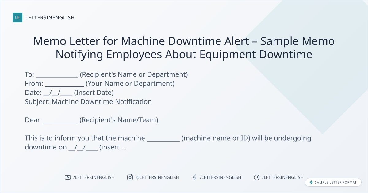 Memo Letter for Machine Downtime Alert – Sample Memo Notifying Employees About Equipment Downtime