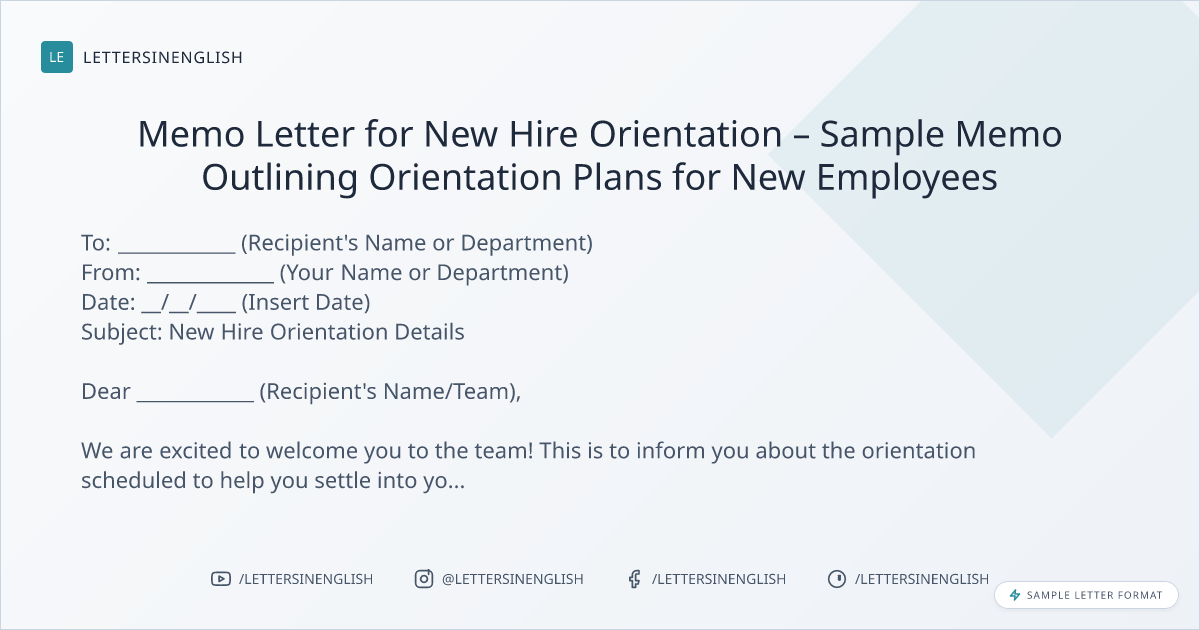 Memo Letter for New Hire Orientation – Sample Memo Outlining Orientation Plans for New Employees