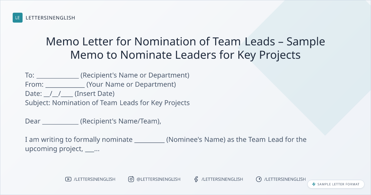 Memo Letter for Nomination of Team Leads – Sample Memo to Nominate Leaders for Key Projects