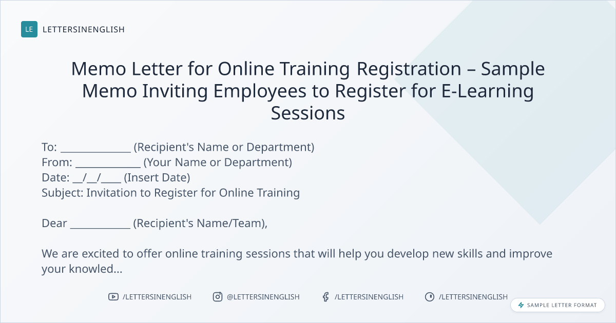 Memo Letter for Online Training Registration – Sample Memo Inviting Employees to Register for E-Learning Sessions