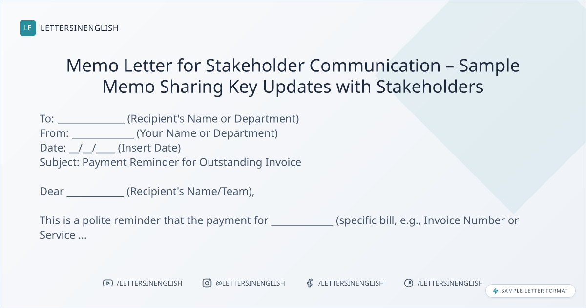 Memo Letter for Stakeholder Communication - Payment Reminder for Outstanding Invoice