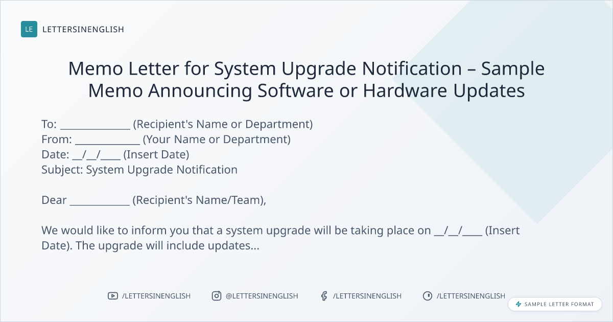 Memo Letter for System Upgrade Notification – Sample Memo Announcing Software or Hardware Updates