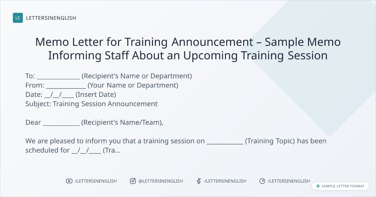 Memo Letter for Training Announcement – Sample Memo Informing Staff About an Upcoming Training Session