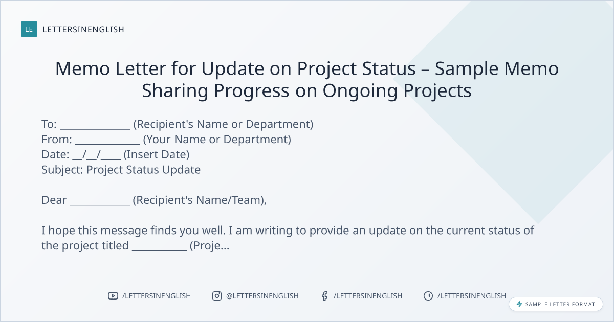 Memo Letter for Update on Project Status – Sample Memo Sharing Progress on Ongoing Projects
