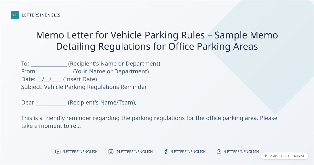 Memo Letter for Vehicle Parking Rules – Sample Memo Detailing Regulations for Office Parking Areas
